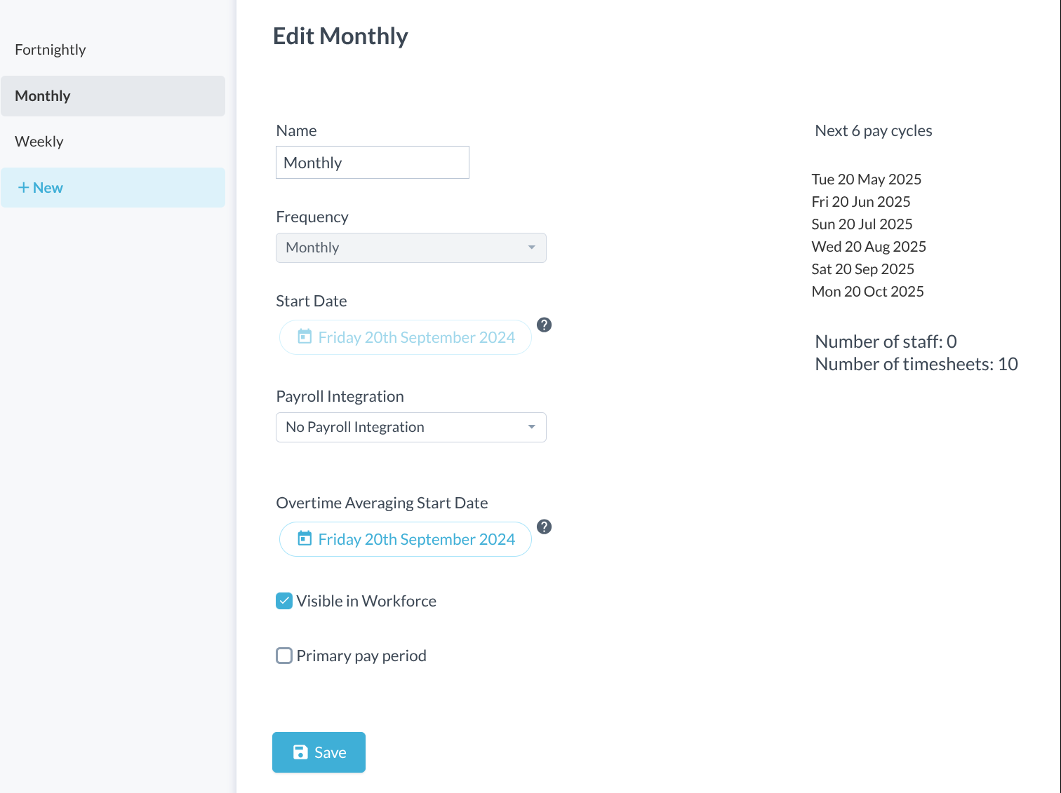 Currently, we support Pay Period frequencies - Weekly, Fortnightly, Semi-Monthly and Monthly.