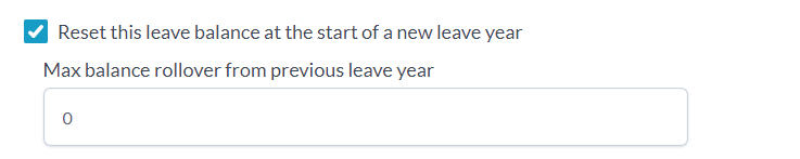 This will reset the leave balance to the pro-rated leave entitlement for this leave type at the start of a new leave year. You can also set a maximum balance that rolls over on top of their maximum entitlement.