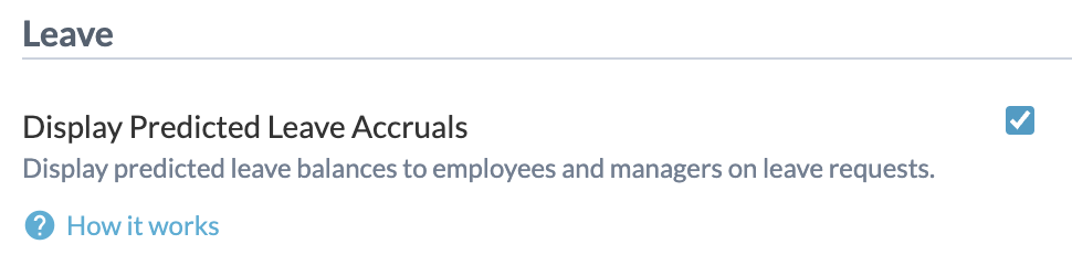 By enabling projected leave balances, employees and managers will be able to see their predicted balance for each leave type for a given date. That way, they can make more informed decisions when requesting and approving leave.