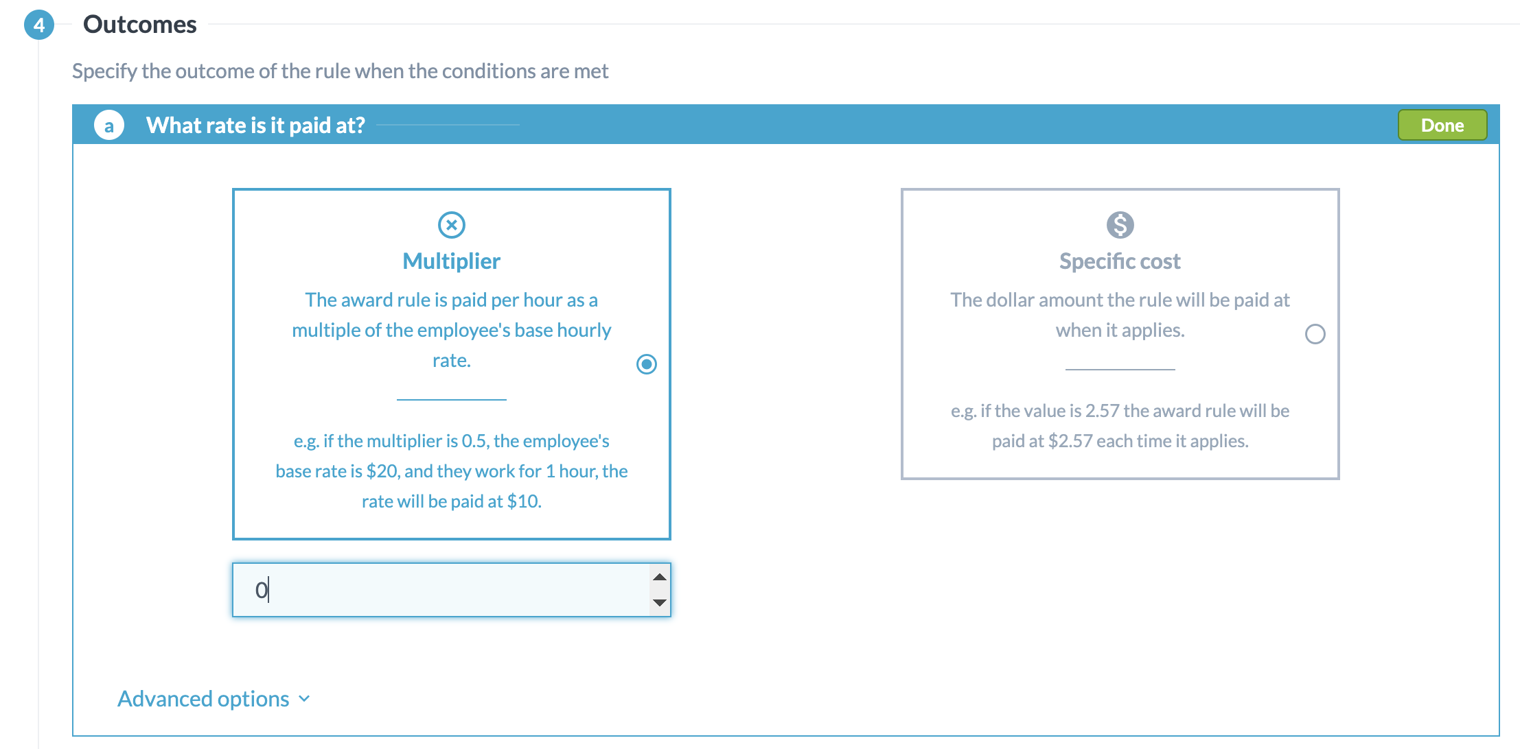 Set the 'What rate is it paid at?' multiplier to x0