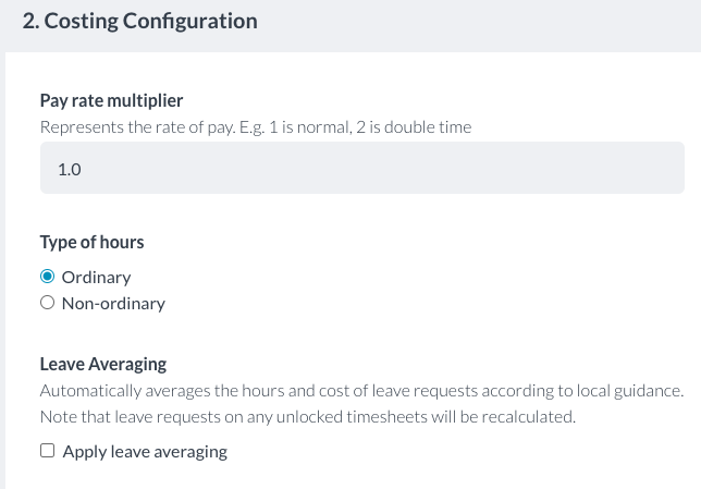 If you want to calculate the average cost and hours for employees who receive variable pay or who work irregular hours for this type of leave, enable Leave Averaging. For more on Leave Averaging, see our guide here.