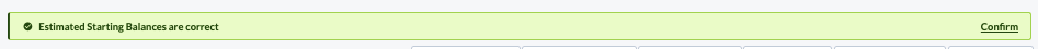 Once Starting Balances have been reviewed and updated (if necessary), press the 'Confirm' button the green banner to confirm.