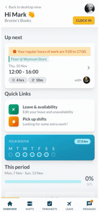 Depending on your employment type and your organisation settings, your organisation may require you to accept or decline any shifts that doesn't meet your regular hours of work.
