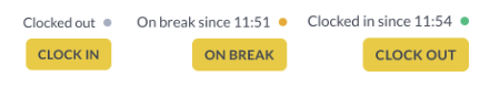Check whether you're clocked in, out, or onto a break by viewing your status in the top right corner of the app.