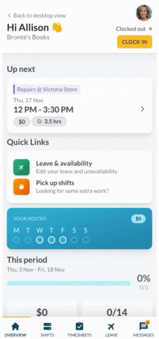 You may work multiple jobs that use Workforce. Make use of the account switcher to see your shifts, leave, and more without having to login each time.
