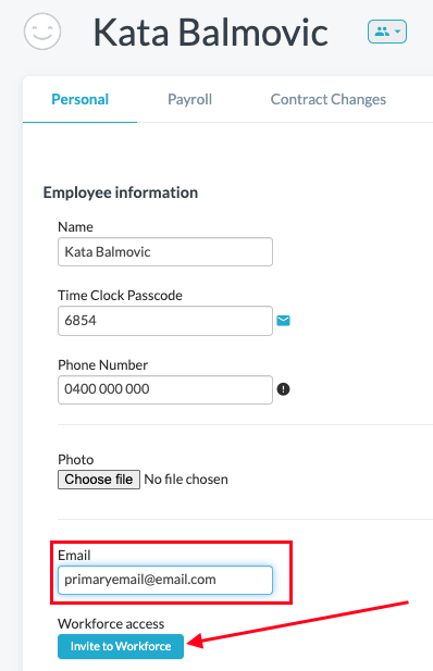 Update the email address to the desired email and select Invite to Workforce: