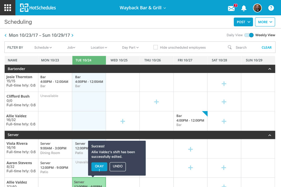 However, Hotschedules interface is much more outdated than 7shifts, making navigation difficult and tedious. Its mobile app is also not free - employees need to pay for the app to be able to use it on their mobile device.