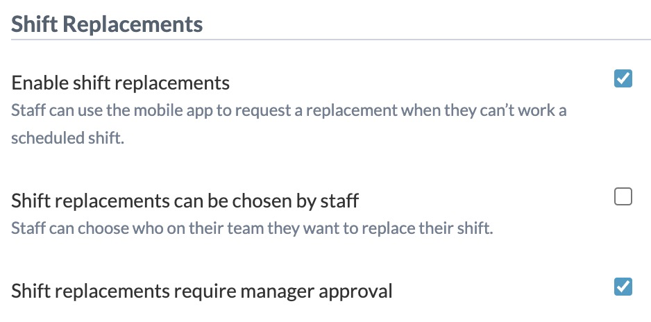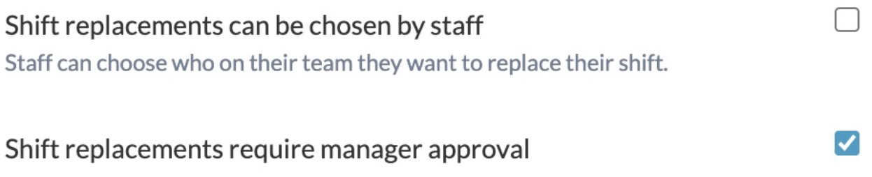 (optional) if you would like managers to approve shift replacement requests, select shift replacements require manager approval