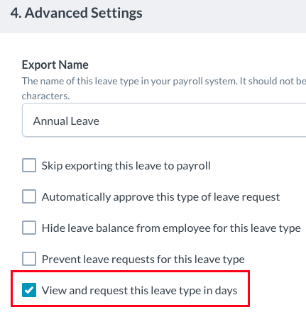 If you want this type of leave to be excluded when exporting to payroll, tick the box: