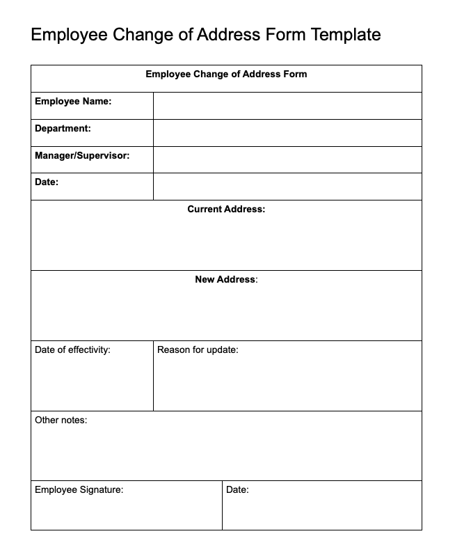 Updating employee information is a routine occurrence – standardizing it goes a long way in preventing issues down the line. Have your staff complete this form whenever they need to update their address so you never let important information slip thorough the cracks.
