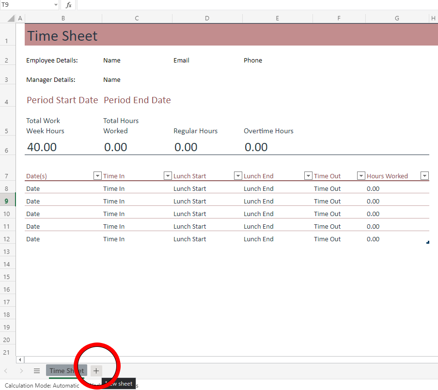 It’s always a good idea to keep a blank version of the template on a separate sheet in your workbook so you can copy and paste it to add more new employees later.