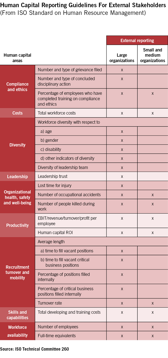 The first-ever ISO standard for human capital reporting was passed in November 2018. Officially titled the “Human Resource Management — Guidelines for Internal and External Human Capital Reporting,” it was scheduled for publication Dec. 18.