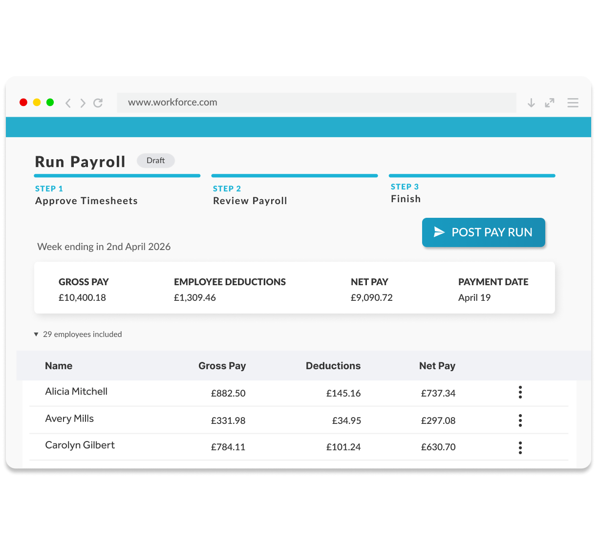 By tracking time and attendance in the same HMRC-recognised payroll platform, you'll enhance compliance and reduce errors that come from moving data between platforms. All that’s left is a quick review of the numbers before running payroll.