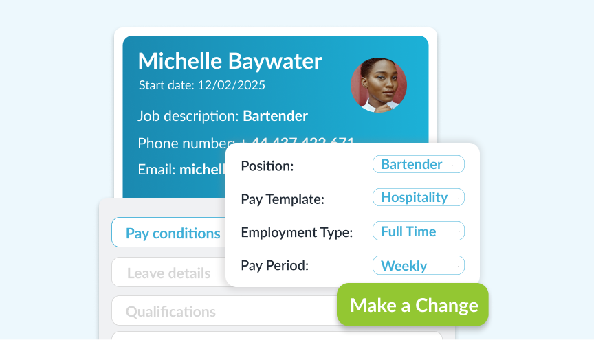 Along with Onboarding & Employee Self-Service, staff can update their details in the same system as payroll. This means you won’t need to re-enter employee info, chase new staff for tax declaration details, or delay payroll again.