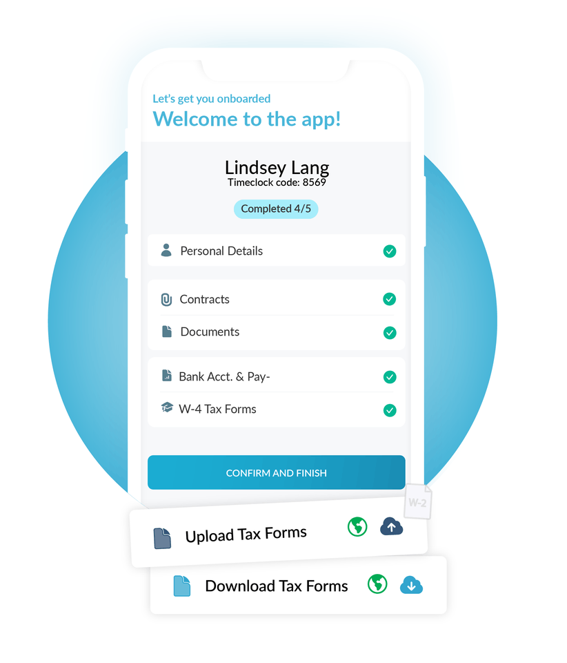 Workforce.com makes onboarding fully digital. New hires enter their own employee information directly into the system. No double-entry or unnecessary paperwork. Tax forms, direct deposit details, and personal data all sync instantly with payroll.