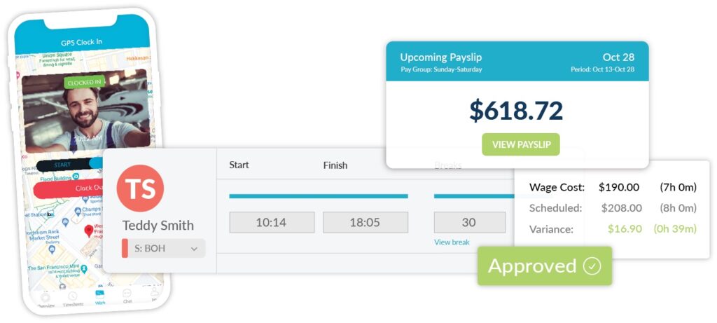 Missed a clock-in? The system alerts managers in real-time, so they can check in with staff and make quick corrections well before payroll is due. You’ll also get notifications for potential overtime or missed breaks, helping you stay compliant and avoid unplanned costs.