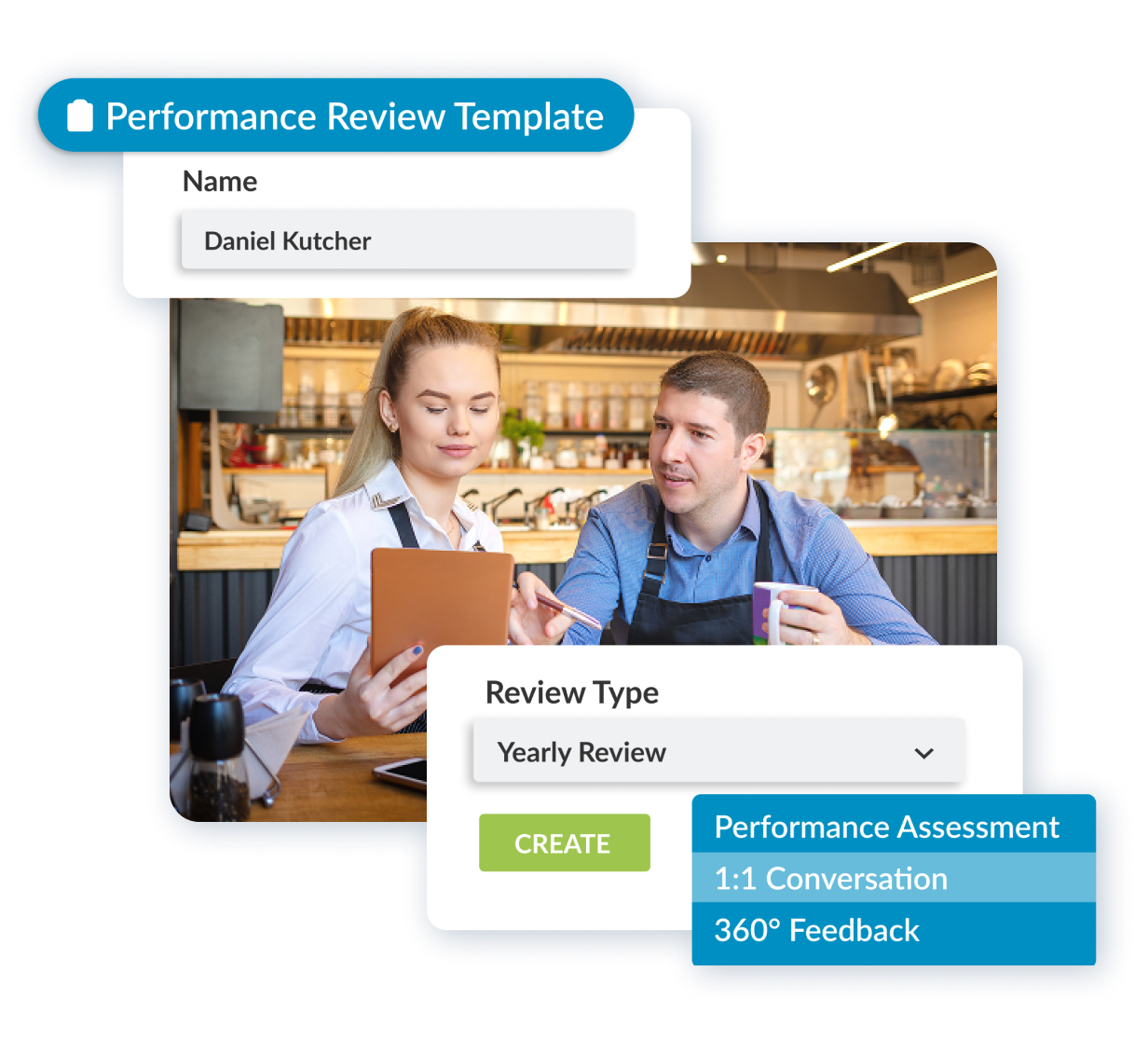 - Conduct 360 and 1:1 performance reviews easily with ready-to-go templates and keep them consistent with manager reminders. You'll be able to see wider performance patterns across teams and locations to address.