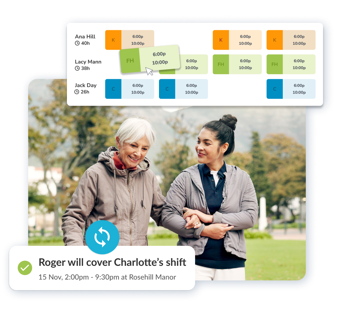 Schedule based on staff-to-resident ratios, fill coverage gaps in real-time, and improve staff retention.